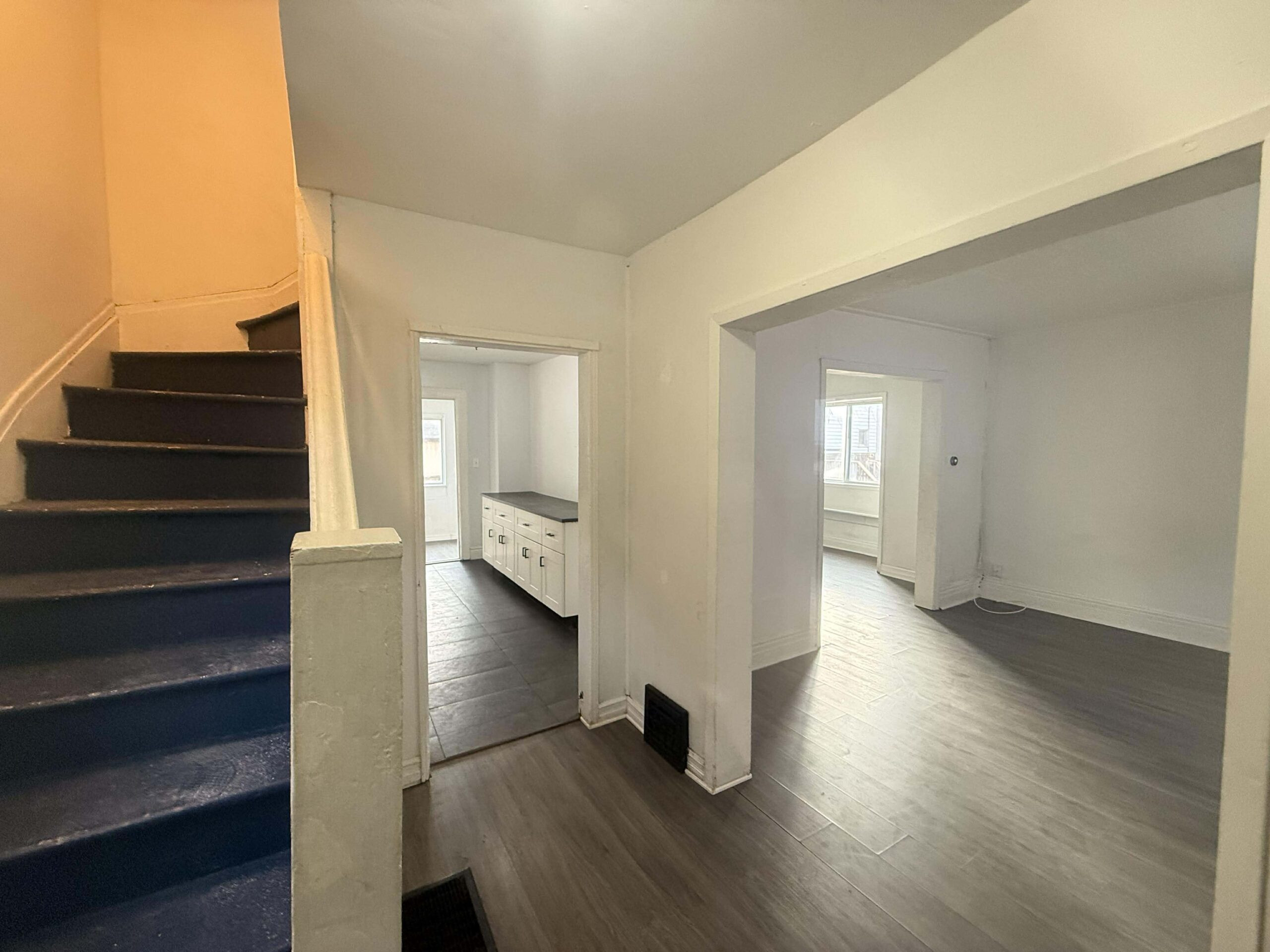 The main floor features a dedicated living room and dining room, a generous kitchen, and a convenient laundry/mudroom with direct access to a private deck overlooking the backyard — ideal for relaxing or entertaining. Upstairs, you’ll find three well-sized bedrooms and a recently renovated three-piece bathroom. The home is entirely carpet-free and currently receiving final upgrades to ensure it’s move-in ready for its next occupants.